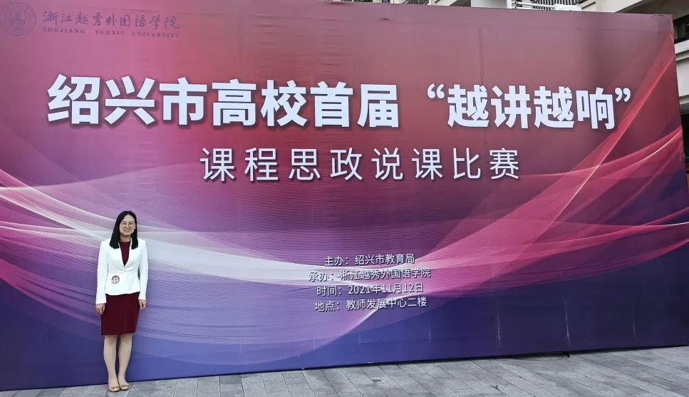 绍兴市高校首届“越讲越响”课程思政说课比赛由绍兴市委宣传部、绍兴市教育局主办,绍兴市高校课程思政建设联盟负责统筹,浙江越秀外国语学院承办。本次比赛共有在绍12所本专科学校参赛,每校限额推荐 1人,共12人参赛。